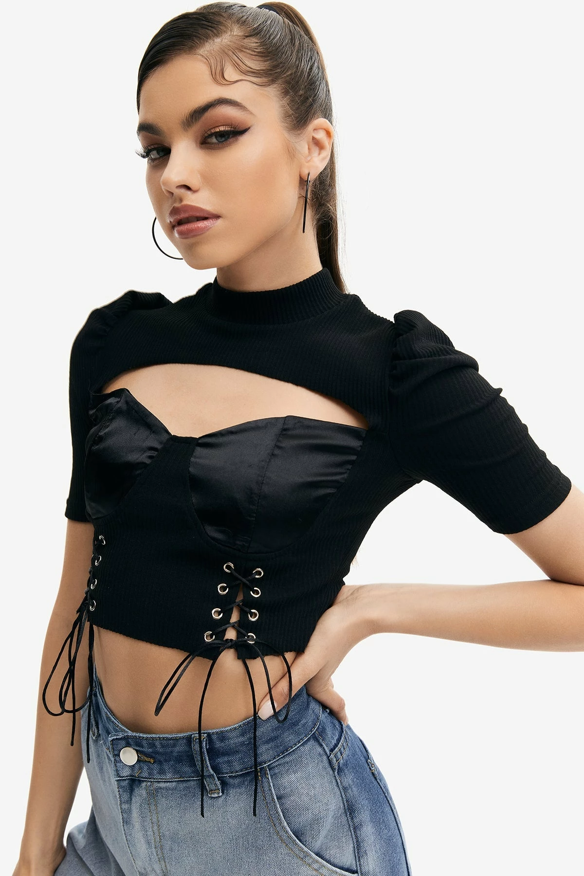 Be the first to review “Solado 2 In 1 Cut Out Lace Up Crop Top” Cancel reply