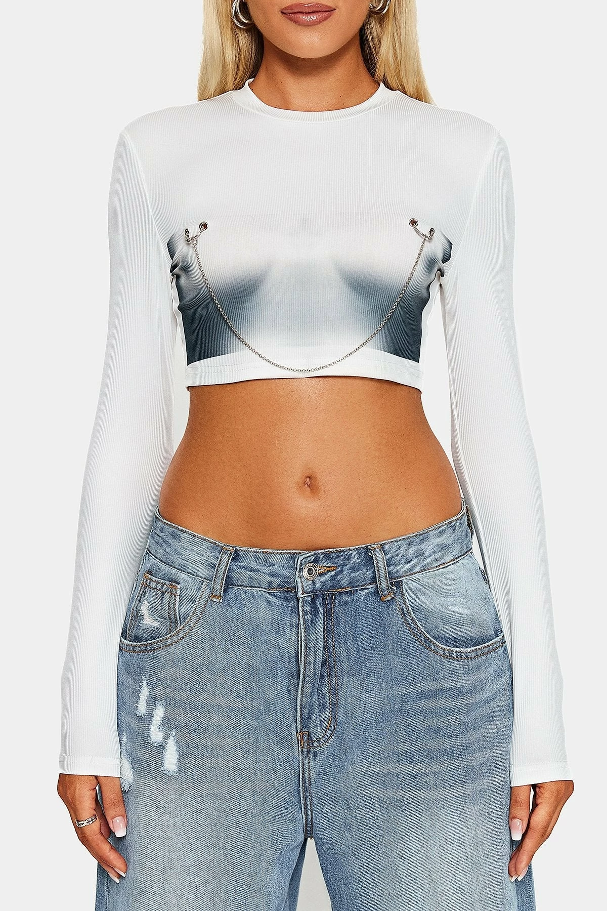 Be the first to review “SOLADO Abstract Print Chain Decor Long Sleeve Crop Top” Cancel reply