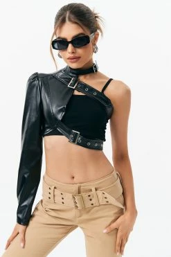 Be the first to review “Solado Asymmetric Buckled Detail Leather Crop Top” Cancel reply