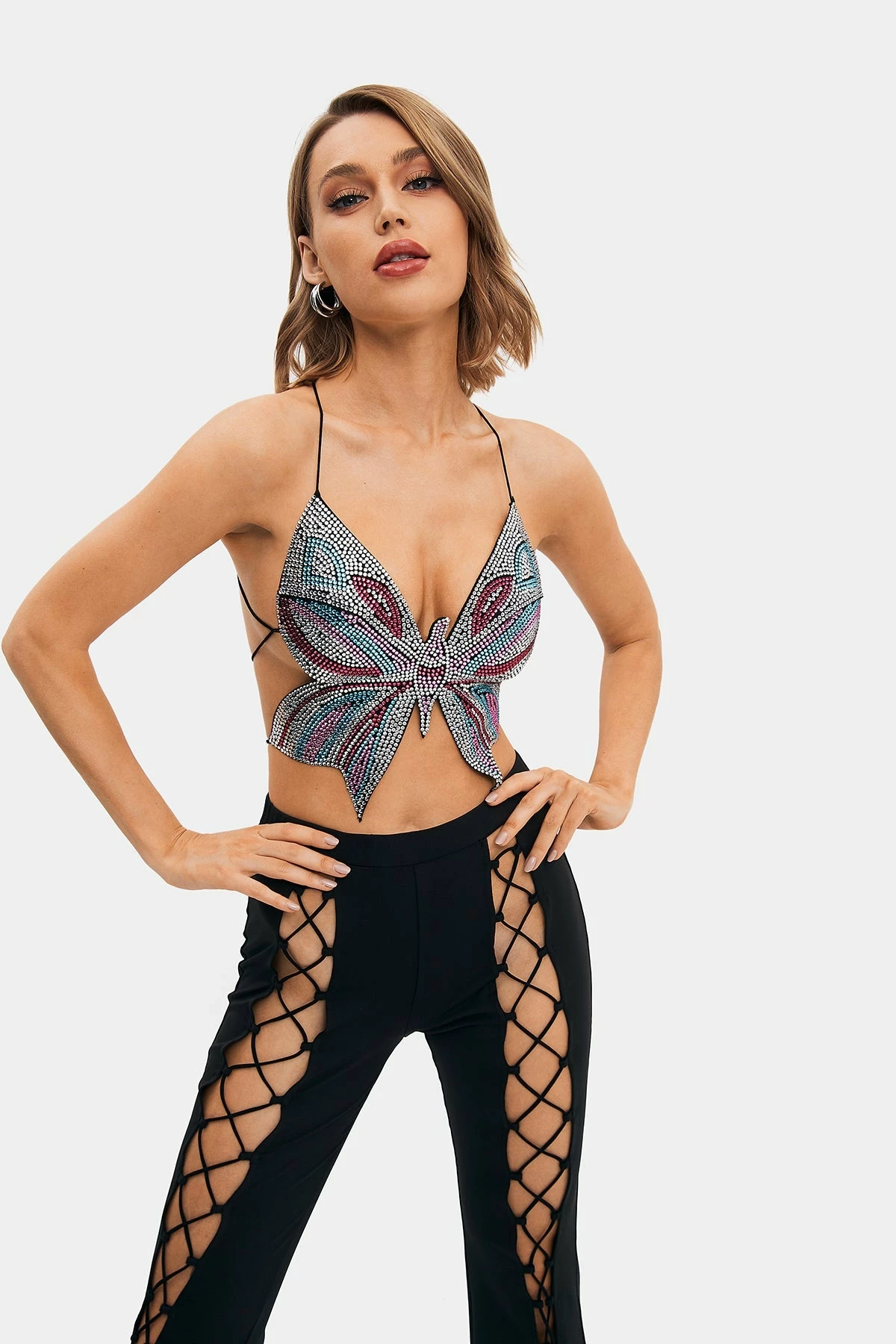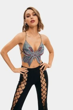 Be the first to review “SOLADO Butterfly Shape Rhinestone Decor Cross Tie Corset Top” Cancel reply
