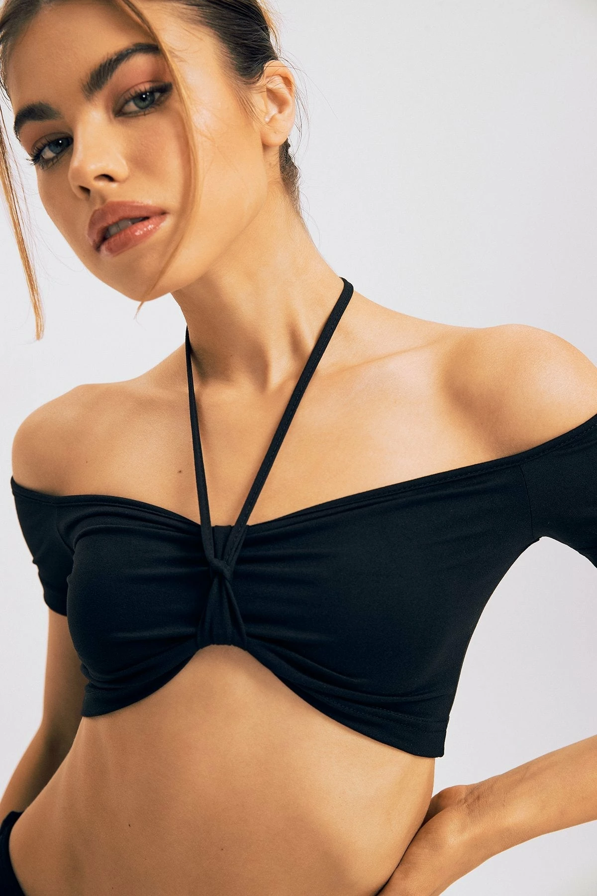 Be the first to review “Solado Cold Shoulder Halter Neck Asymmetrical Hem Crop Top” Cancel reply