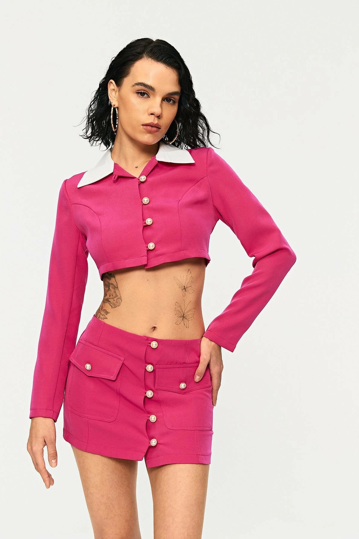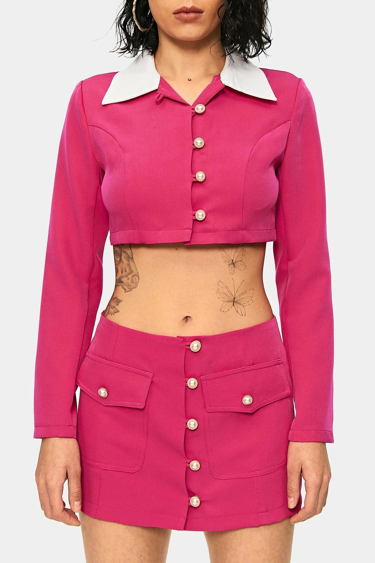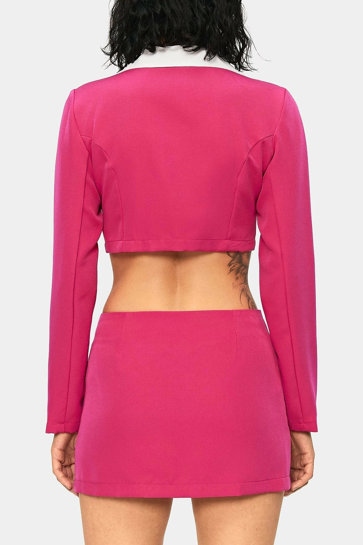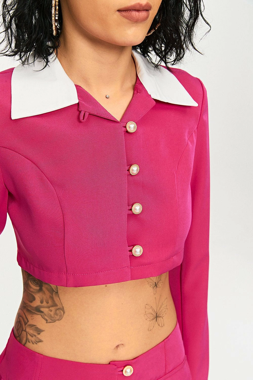 Style:CasualColor:DeepPinkNeckline:Lapel NeckSleeve Length:Long SleeveHem Shaped:SlimComposition:95% Polyester, 5% Spandex