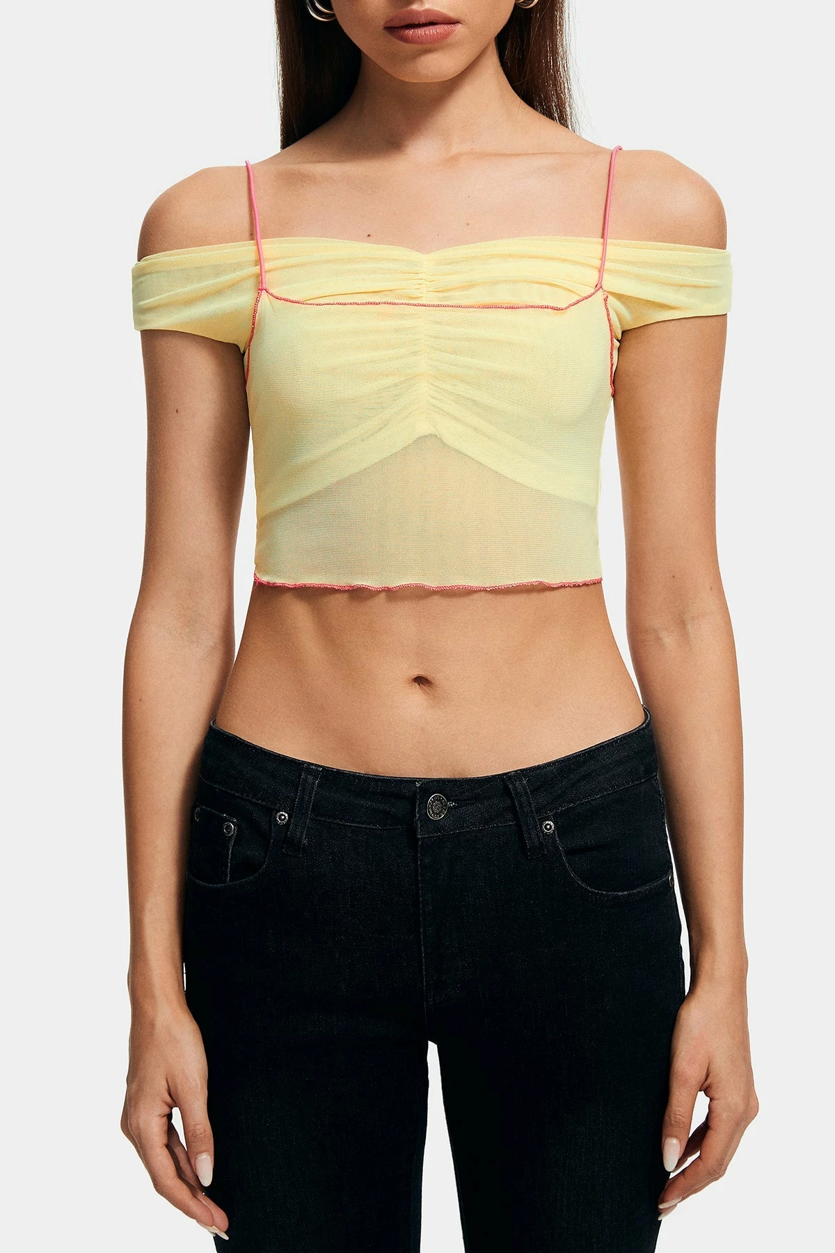 Be the first to review “SOLADO Contrast Color Lettuce Trim Mesh Layered Crop Top” Cancel reply