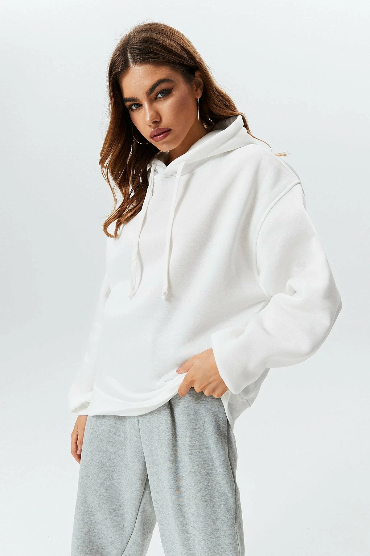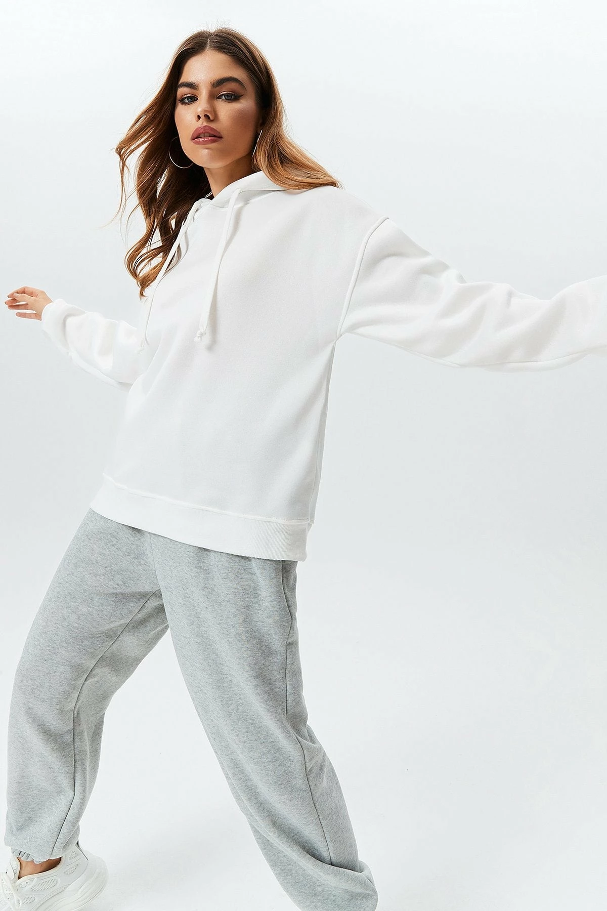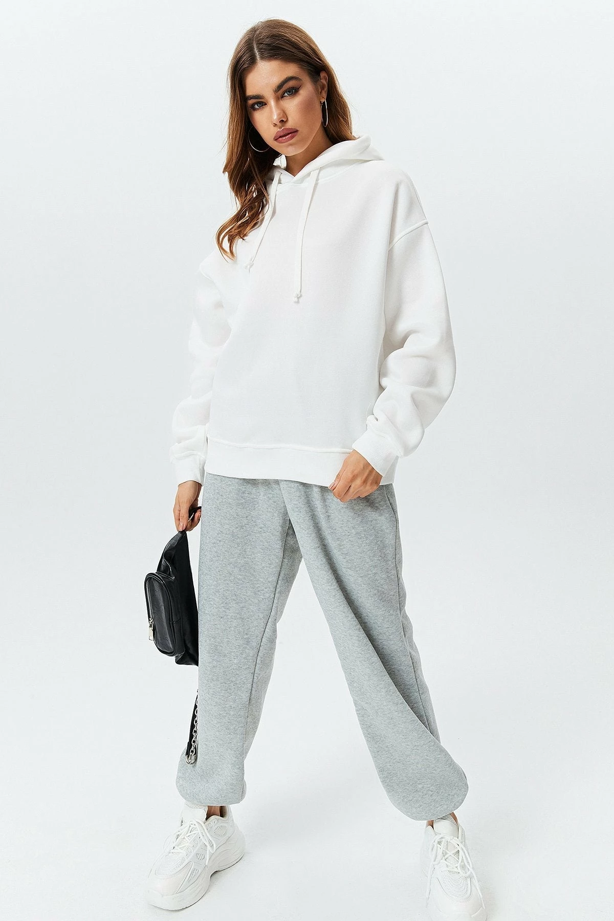 Style:StreetColor:White/BlackSeason:Autumn/WinterNeckline:HoodedSleeve Length:Long SleeveHem Shaped:LooseComposition:100% Polyester