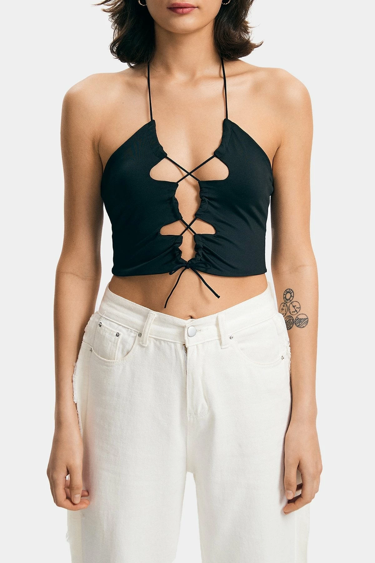 Be the first to review “Solado Halter Neck Cut Out Drawstring Backless Crop Top” Cancel reply