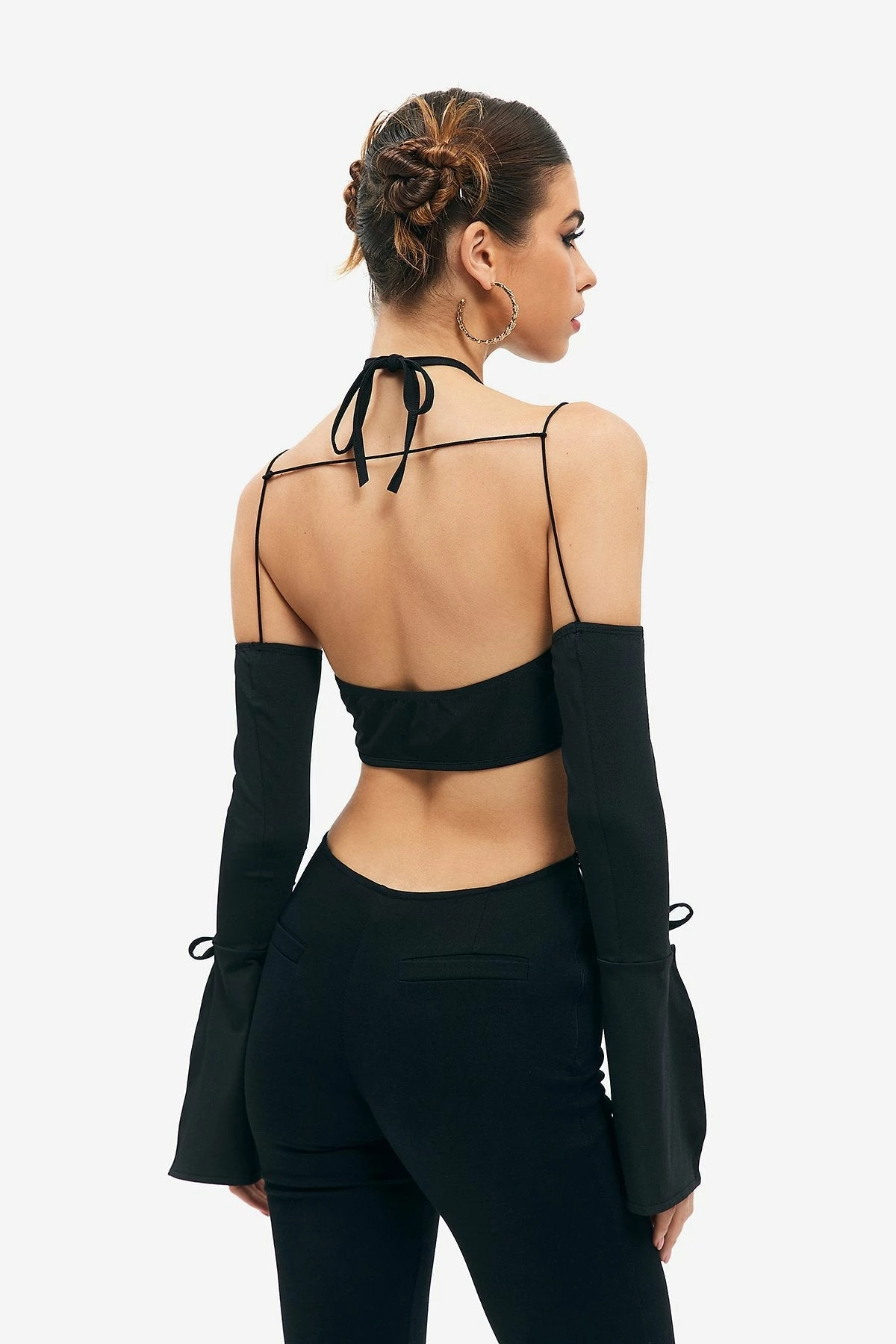 Be the first to review “SOLADO Halter Neck Flared Sleeve Tie Backless Crop Top” Cancel reply