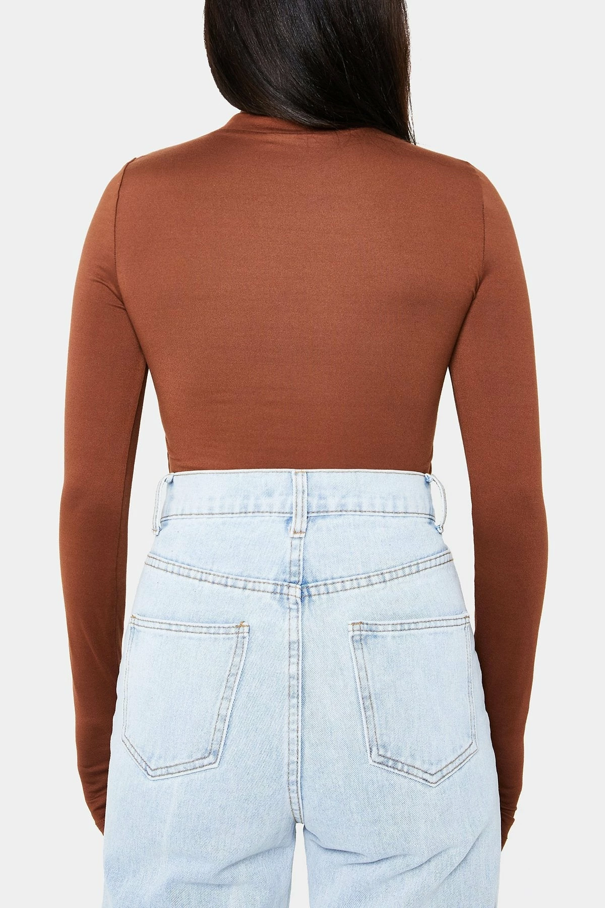 Style:CasualColor:BrownNeckline:Round NeckSleeve Length:Long SleeveHem Shaped:SlimComposition:95% Polyester, 5% Spandex