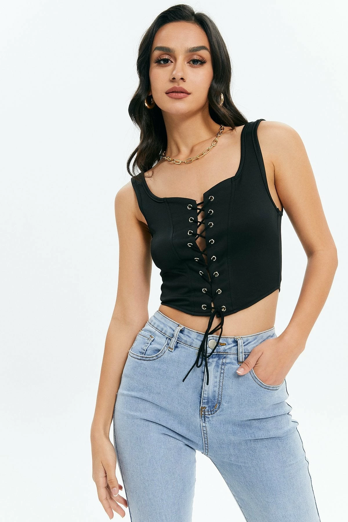 Be the first to review “Solado Lace Up Backless Solid Tank Top” Cancel reply