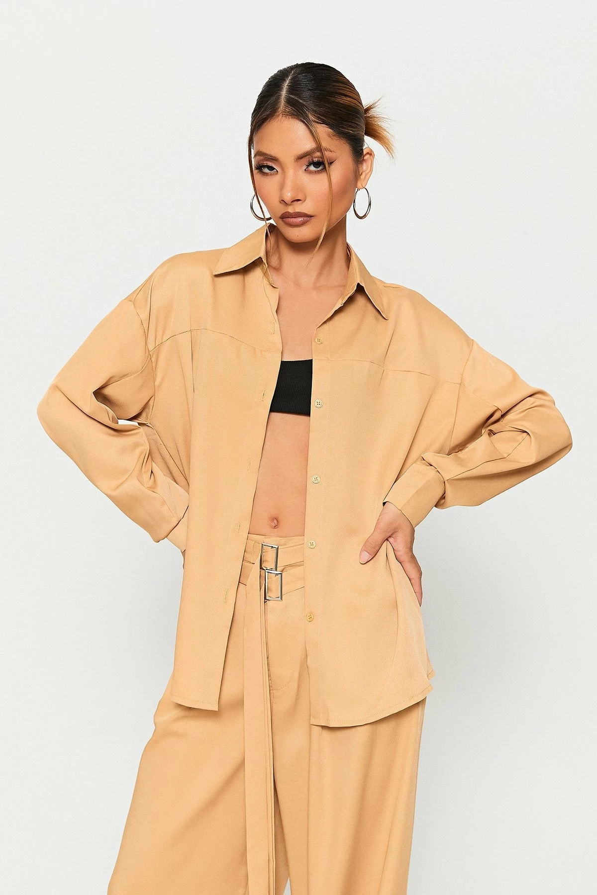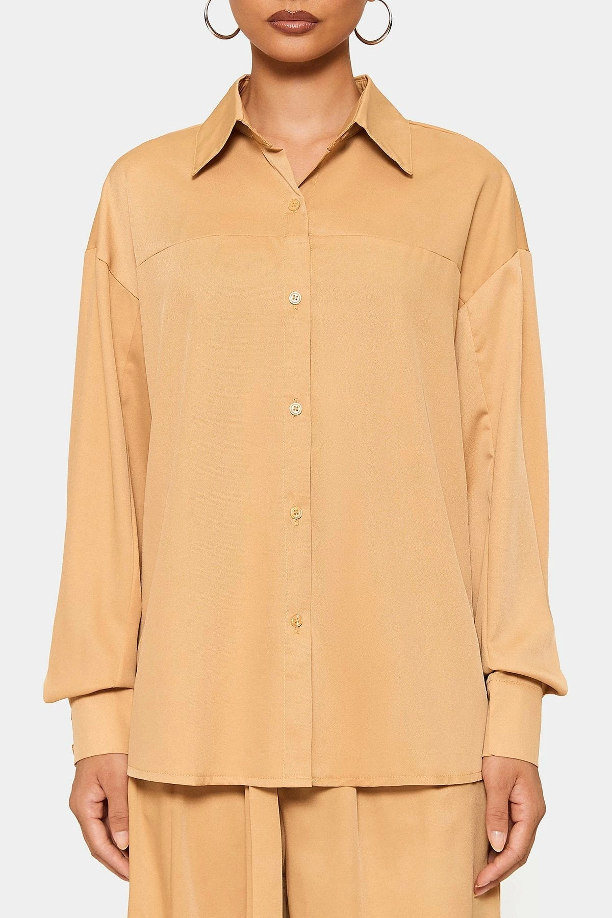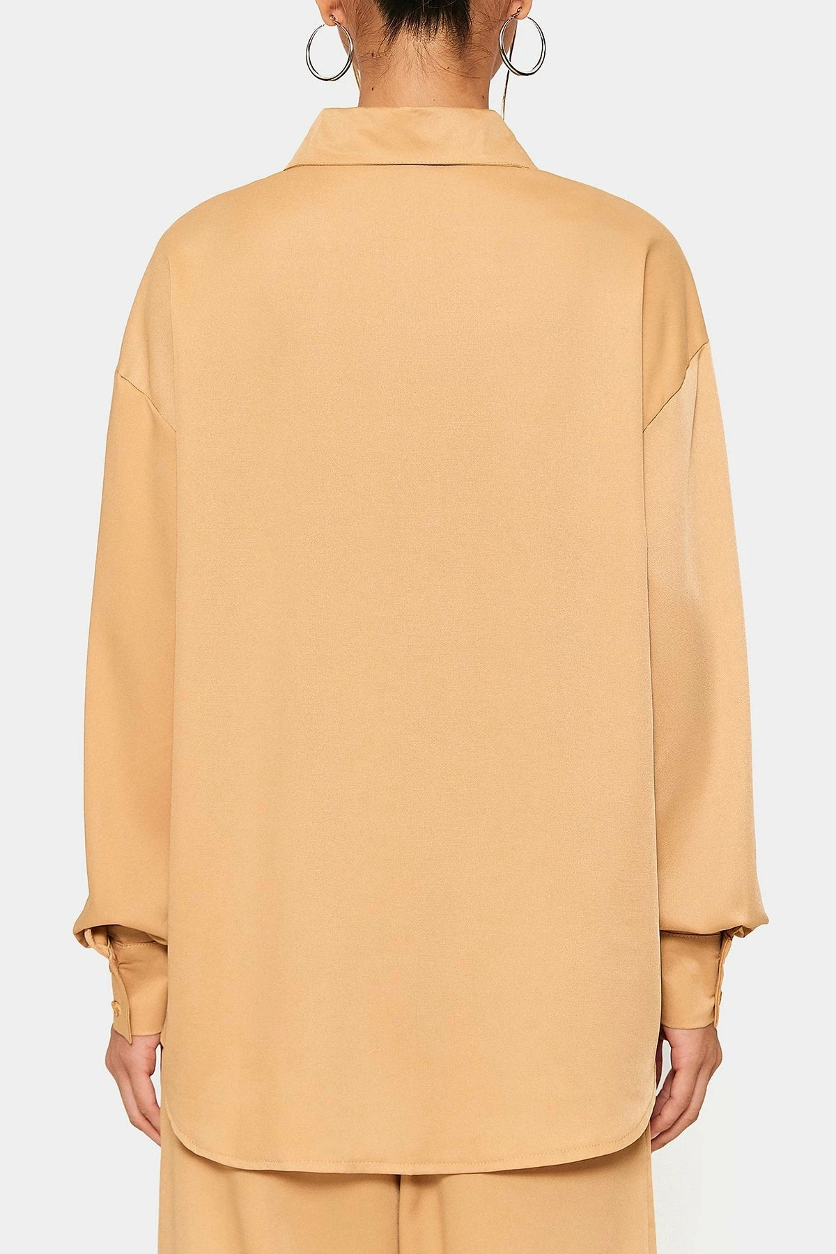 Style:CasualColor:WheatNeckline:Lapel NeckSleeve Length:Long SleeveHem Shaped:LooseComposition:92% Polyester, 8% Spandex