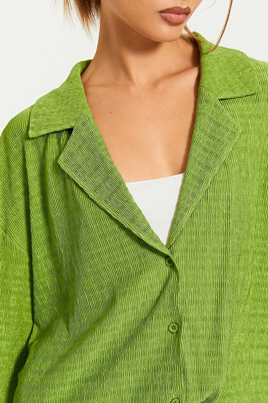 Style:CasualColor:YellowGreenNeckline:Lapel NeckSleeve Length:Long SleeveHem Shaped:SlimComposition:95% Polyester, 5% Spandex
