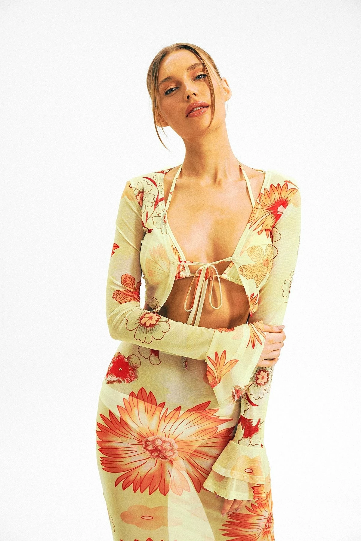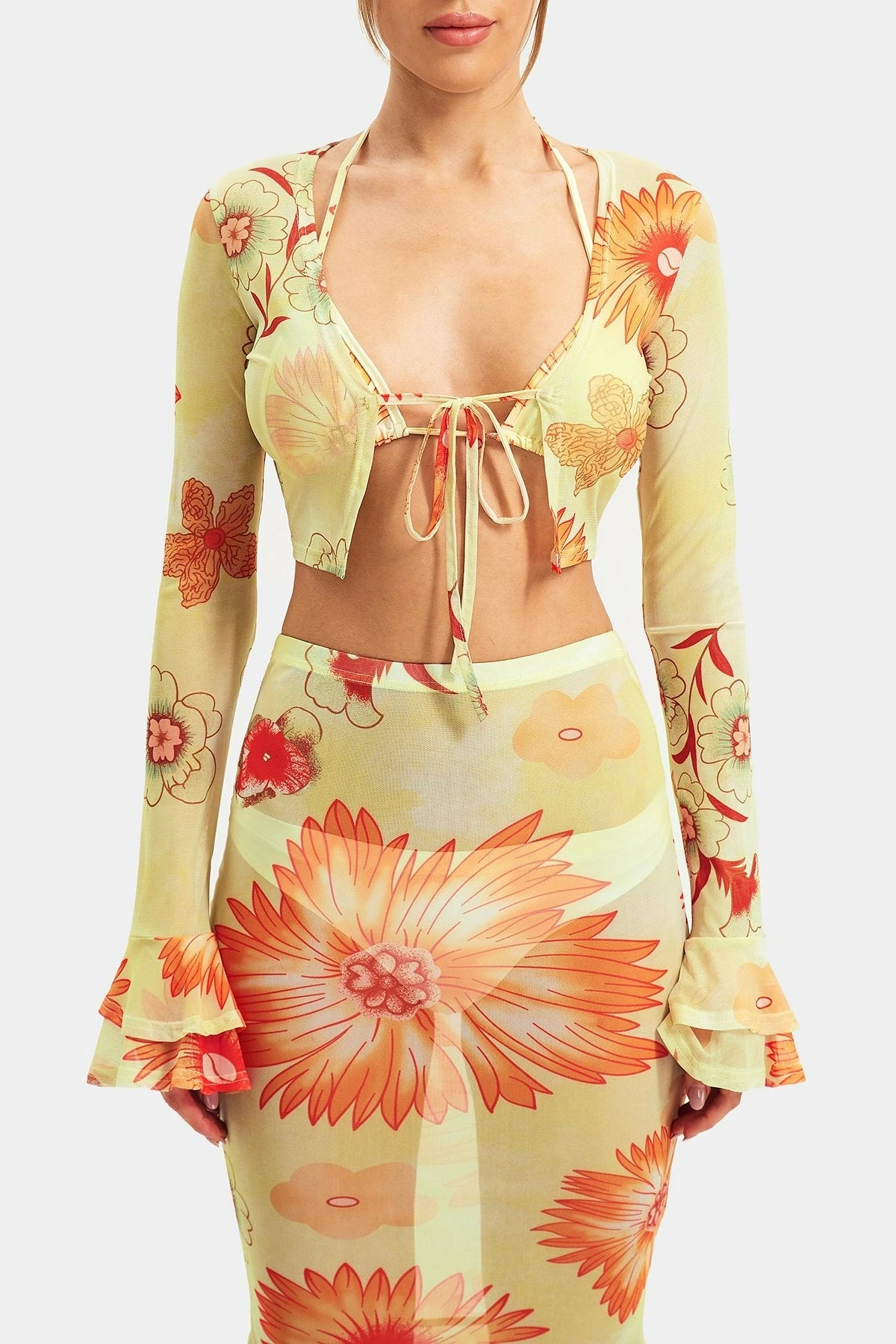 Be the first to review “Solado Mesh Ruffle Sleeve Floral Print Tie Front Shirt Without Bra” Cancel reply