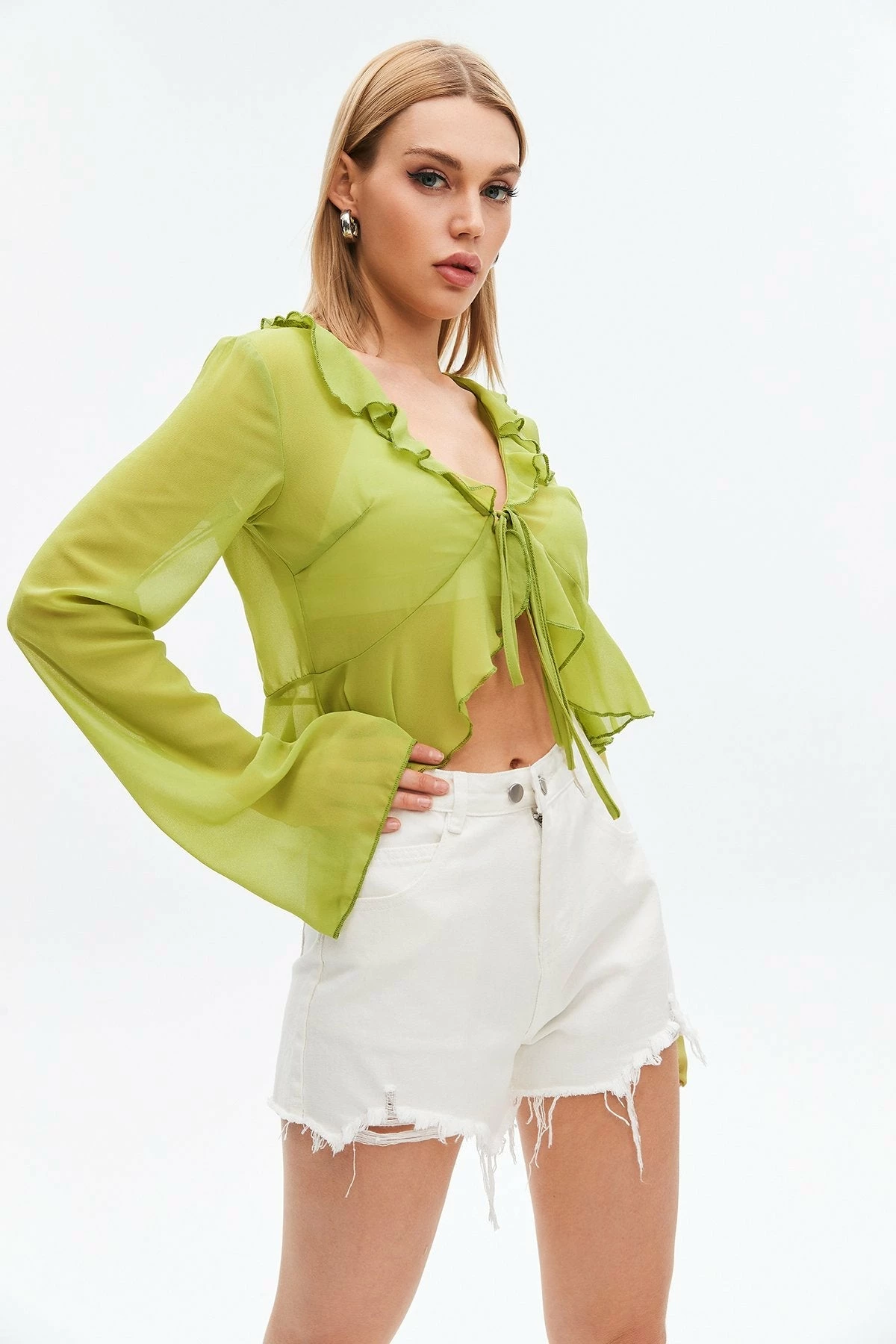 Be the first to review “Solado Mesh Ruffle Tie Detail Crop Top” Cancel reply