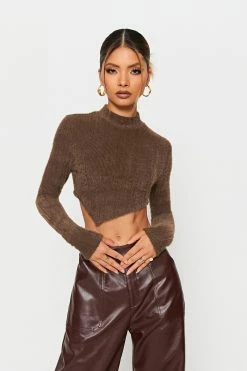 Be the first to review “SOLADO Mock Neck Asymmetrical Hem Fluffy Knitted Crop Top” Cancel reply