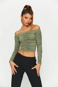 Be the first to review “SOLADO Off Shoulder Ruched Long Sleeve Crop Top” Cancel reply