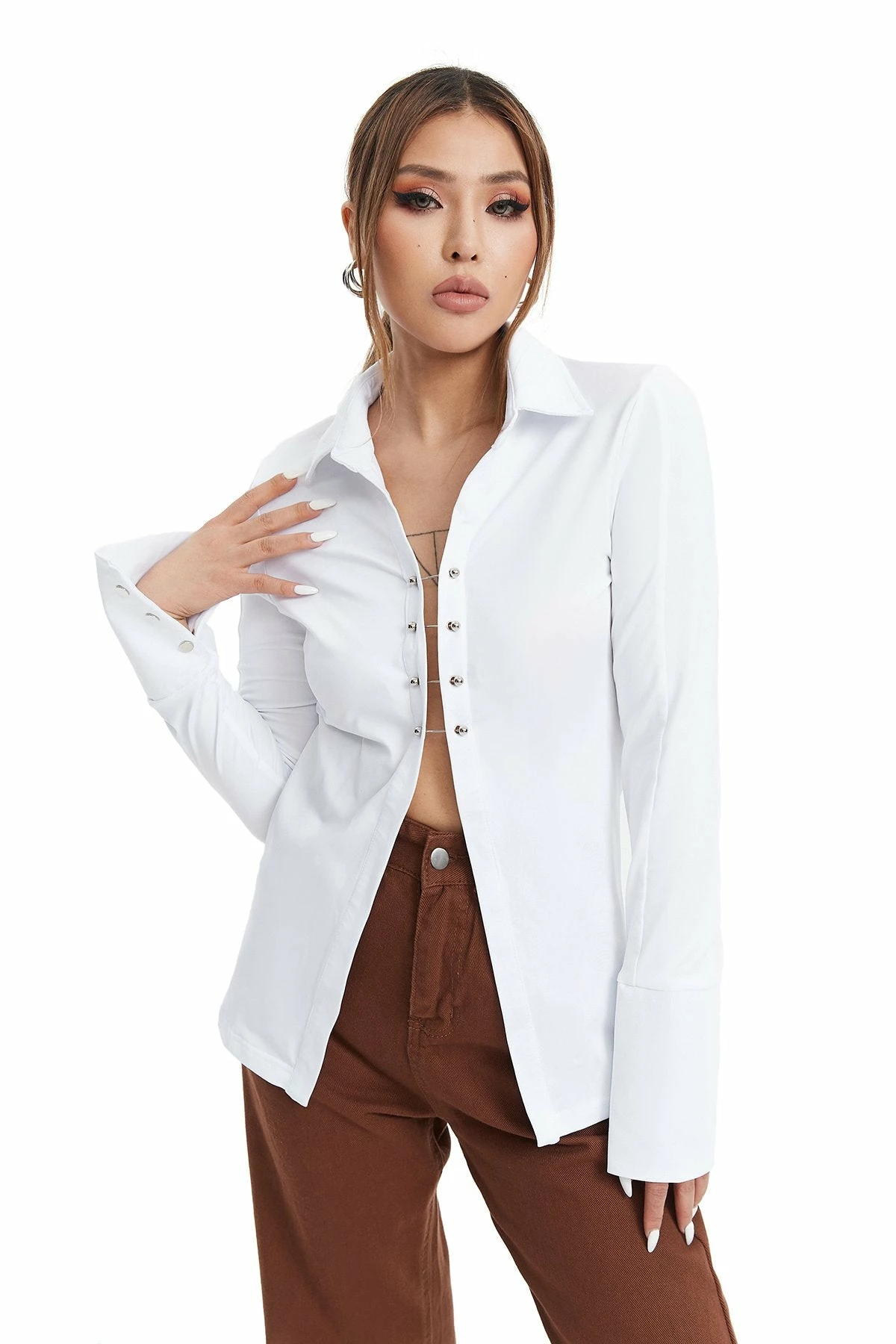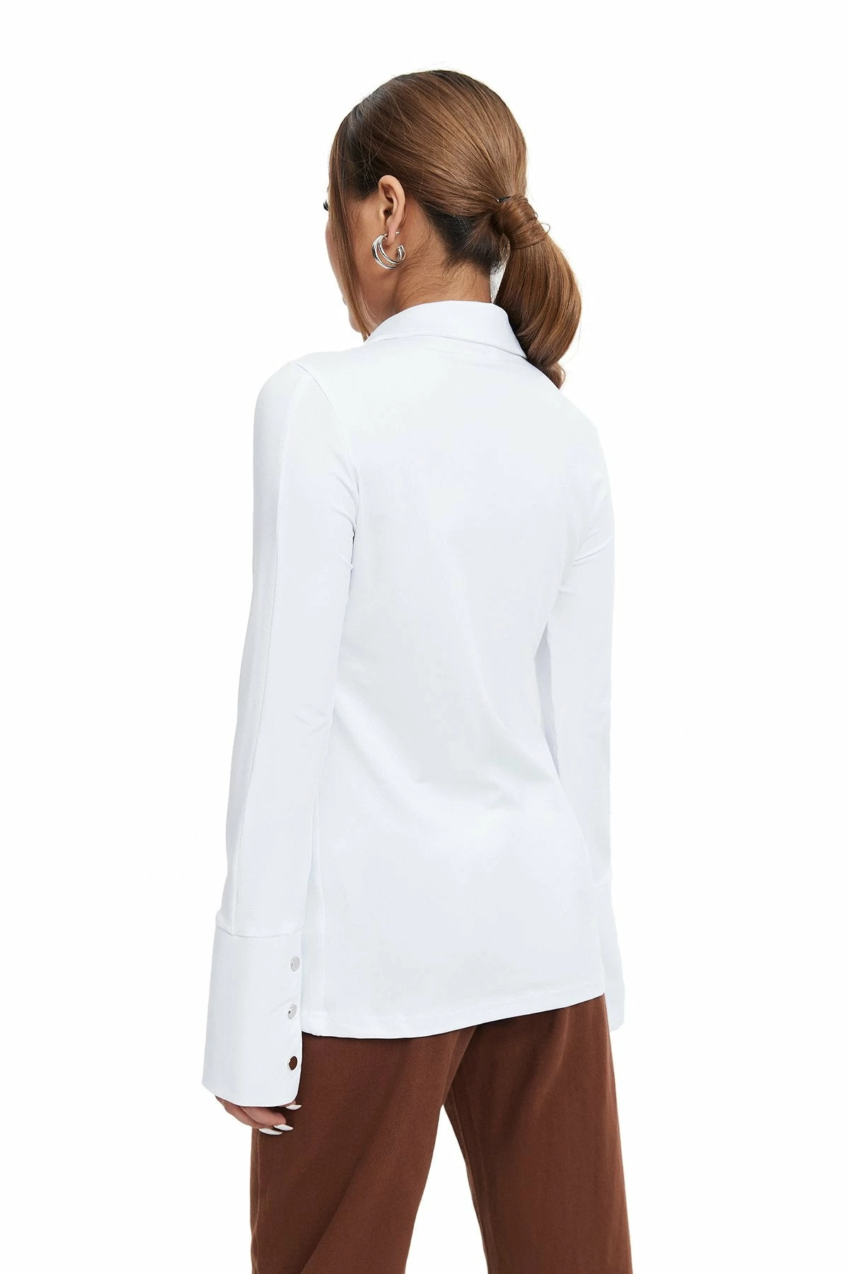 Style:CasualColor:WhiteSeason:Spring/AutumnNeckline:V NeckSleeve Length:Long SleeveHem Shaped:LooseComposition:100% Polyester