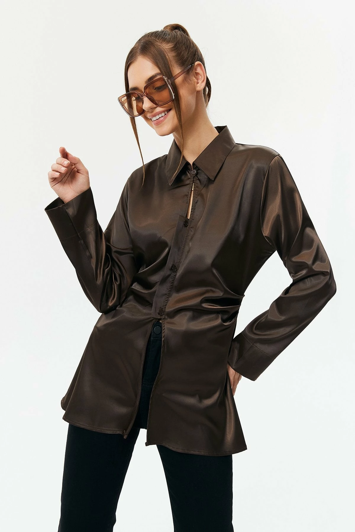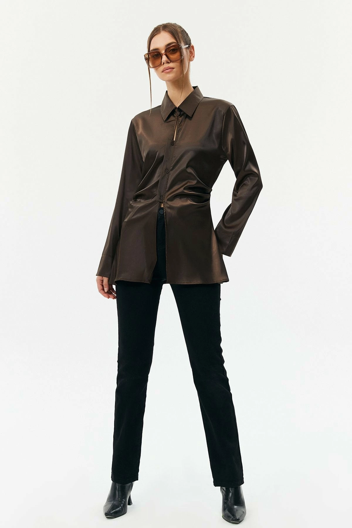 Be the first to review “Solado Satin Button Front Ruched Long Sleeve Shirt” Cancel reply